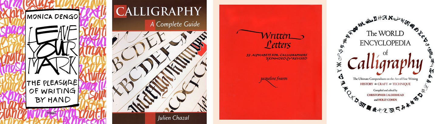 Collecting books can be an obsession, but in the area of letterform and book arts there are some basic instructional books I recommend as unequivocally necessary, and several which were for me true eye-openers.