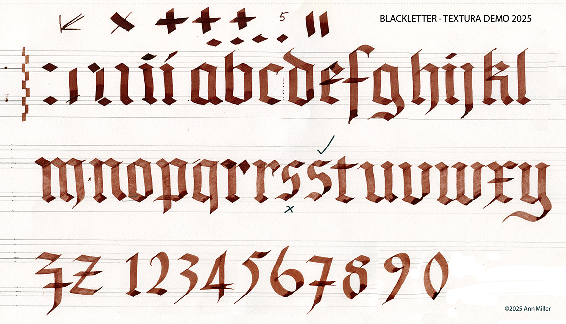 Formal study of a historical exemplar often begins with a copy of the model placed on a light box and the text copied onto tracing paper. Guidelines are penciled onto the manuscript copy to reinforce alignment. Because we are so accustomed to digital lettering, it’s eye-opening to see how irregular some of the ancient manuscripts are, and we learn about them by examining them up close and attempting to replicate the lettering.