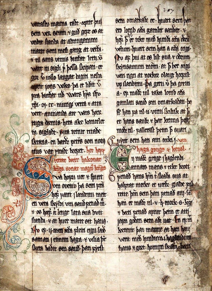 Some tasks seem burdensome, far too laborious to even consider, preventing forward movement on the creative actions we immediately want to jump into. For the beginner the prep work may seem pointless; they just want to copy a fancy Blackletter majuscule or a word in modern script. But patience is key. And we must eventually be able to hang our letters in rows to create those rhythmically woven stripes of text. In medieval manuscripts, inscribed rules delineated columns, gutters, and margins in this 13th c. Faroese manuscript known as the Sheep Letter. The calligrapher focused on floating the lettering within the spaces using a compressed Proto-Gothic script. Ornament occurs on the top edge, a nice design choice, and colorful Lombardic capitals and red text provided colorful graphic relief.